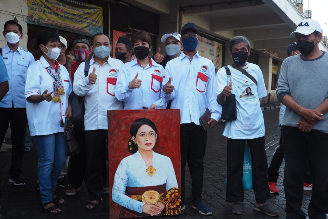 Surabaya – Di depan Pasar Tambahrejo, Kota Surabaya, Rabu (2/3) sejak pagi hari, sekelompok orang berkumpul membawa sebidang kanvas dilapis plastik mika. Wajah Puan Maharani terlukis di sana. Di sudut kiri bawah kanvas tersebut, tertera tiga huruf: DST. “Ini inisial nama pelukisnya, Desemba Titaheluw,” kata beberapa orang dari kelompok yang tengah menunggu itu berbarengan. Mereka tengah menanti kedatangan Ketua DPR RI Puan Maharani yang pagi tadi dijadwalkan melakukan kunjungan ke Pasar Tambahrejo.