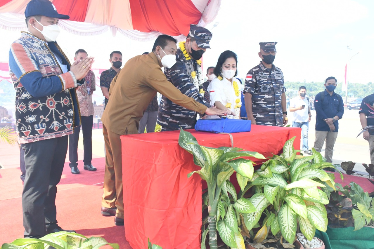 21 Maret 2022, Lantamal VII — Komandan Pangkalan Utama TNI AL (Danlantamal) VII Kupang Laksamana Pertama (Laksma) TNI Dr. Heribertus Yudho Warsono, S.E., M.M., M.Tr.Opsla., CHRMP., CIQnR., CIQaR., CRMP mendukung kegiatan Ekspedisi Rupiah Berdaulat tahun 2022 yang diselenggarakan oleh Bank Indonesia (BI) dan TNI AL, bertempat di Dermaga Mako Lantamal VII Kupang, Jl. Supul Raya, Bolok, Kota Kupang, NTT, Senin (21/3/2022).