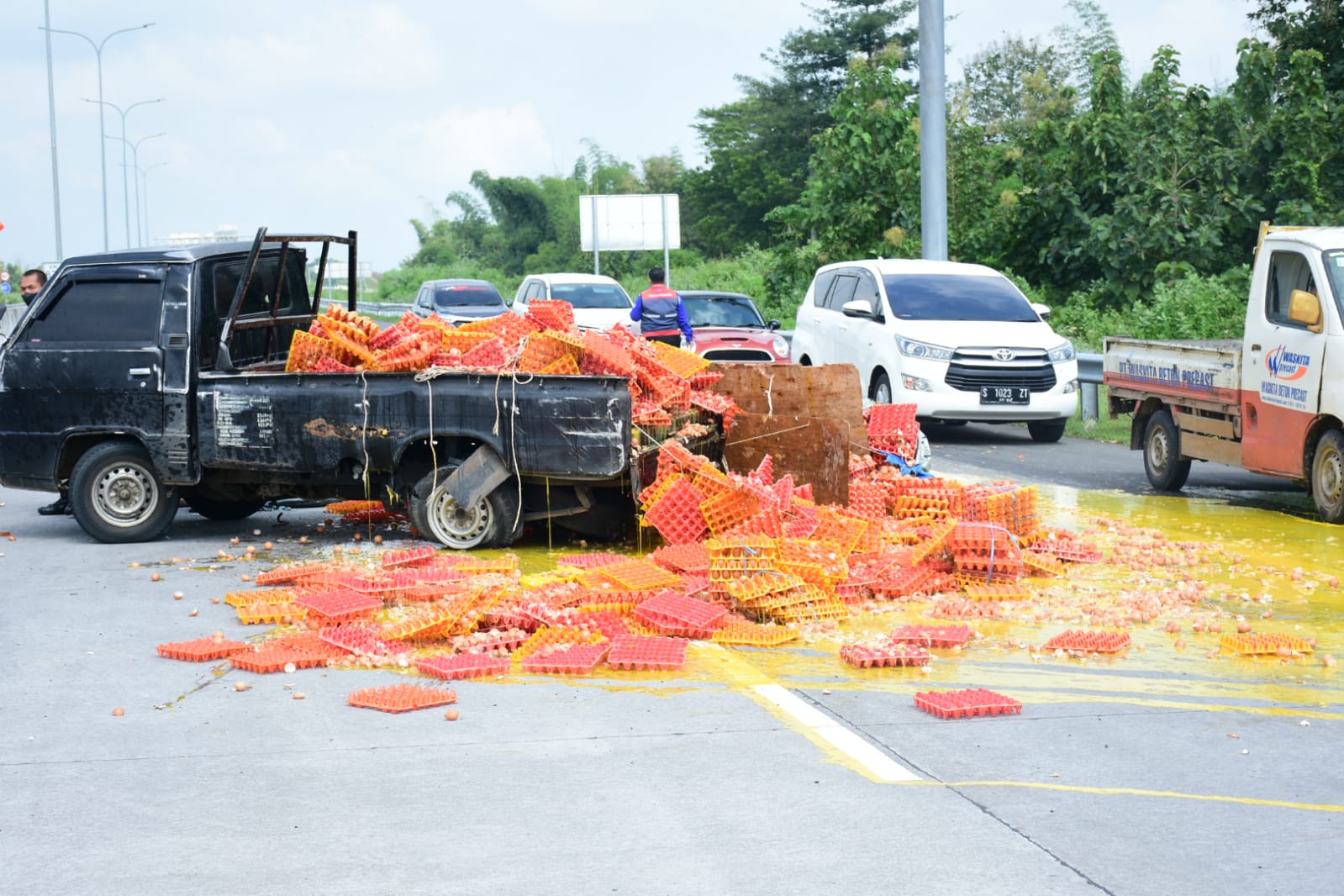 Ketika melintas di Kilometer 826, telah terjadi kecelakaan lalu lintas dimana sebuah mobil bak terbuka yang mengangkut bahan pangan berupa telur ayam mengalami pecah ban sehingga menyebabkan mobil oleng dan menabrak pembatas mobil di jalan tol. Dengan sigap para prajurit Pussenarhanud mengamankan jalur lalu lintas dan memberikan pertolongan pertama dan pengobatan kepada korban kecelakaan a.n. Agus Ariyanto (pengemudi mobil bak terbuka) yang mengalami luka ringan di pelipis kanan.
