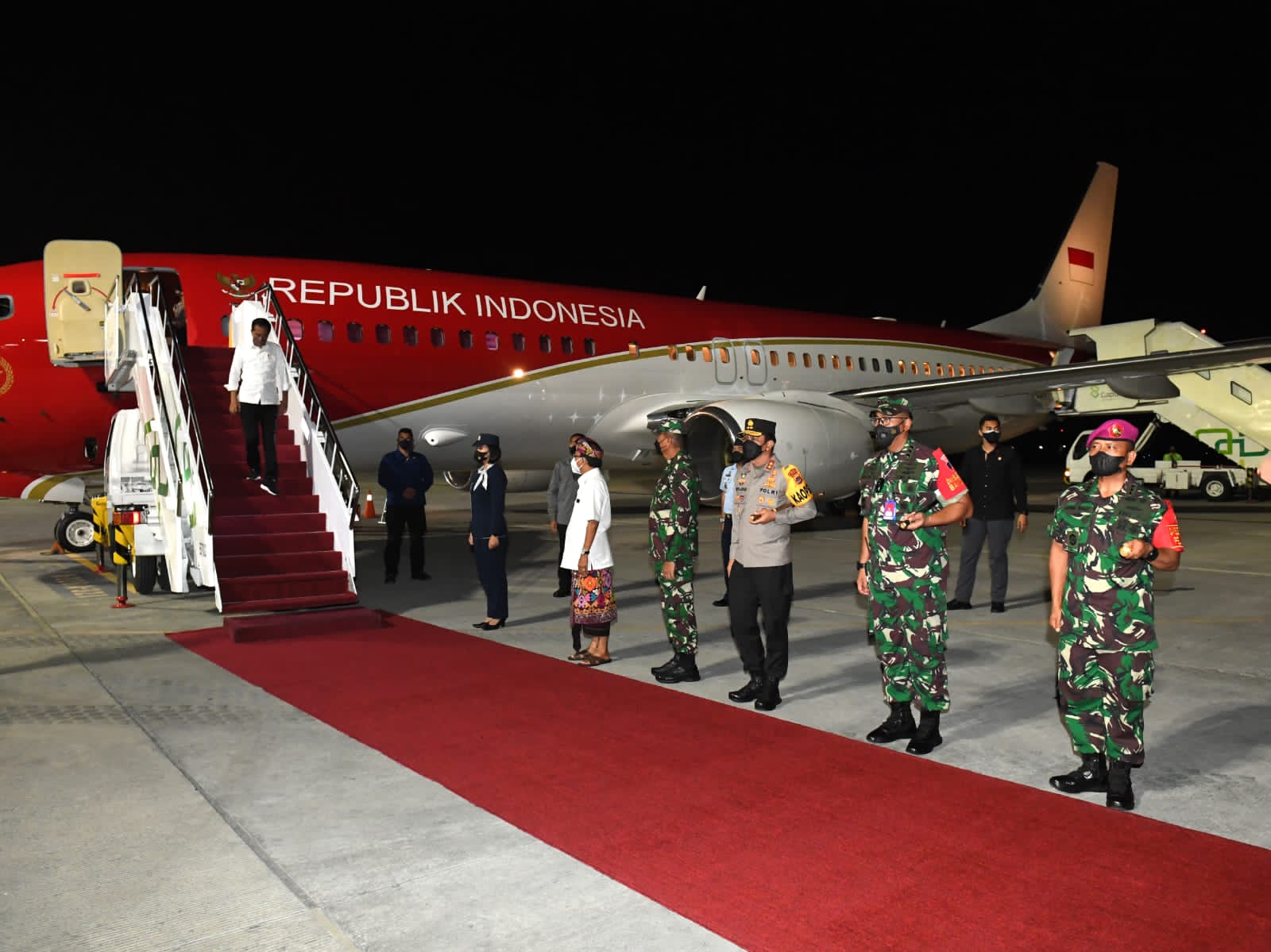 Tiba di Bandara Internasional I Gusti Ngurah Rai, Kabupaten Badung sekitar pukul 20.35 WITA, Presiden disambut oleh Gubernur Bali Wayan Koster, Kapolda Bali Irjen. Pol. Putu Jayan Danu Putra, Kasdam IX/Udayana Brigjen TNI Harfendi, Danlanud Ngurah Rai Kolonel Pnb Reza Ranesa R.S, serta Danlanal Denpasar Bali Kolonel Marinir I Dewa Nyoman Gede Rake Susilo.