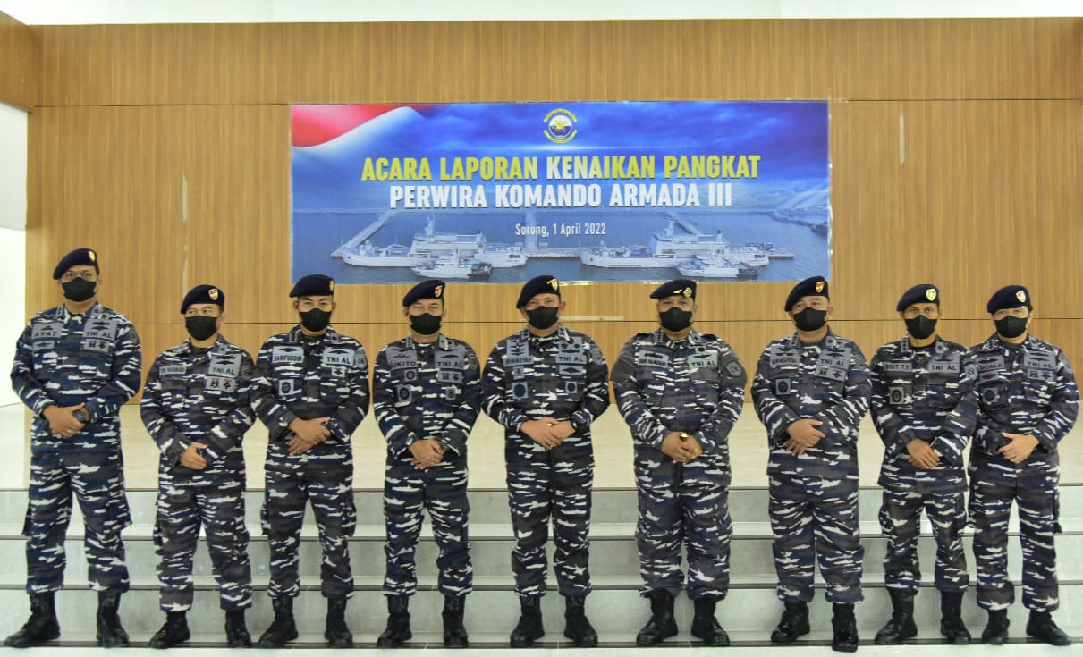TNI AL/Koarmada III. Panglima Komando Armada (Pangkoarmada) III Panglima Komando Armada III Laksamana Muda TNI Irvansyah, S.H., CHRMP., M.Tr. Opsla, menegaskan bahwa kenaikan pangkat Perwira Koarmada III, merupakan momentum penting dalam organisasi TNI khususnya TNI Angkatan Laut, karena hal tersebut merupakan wujud apresiasi yang diberikan pemimpin terhadap pengabdian prajuritnya, hal tersebut merupakan sambutan Panglima Koarmada III saat memimpin acara Pelaporan Korps Kenaikan Pangkat Pamen Koarmada III di Gedung Mas Pardi Mako Koarmada III, Katapop Papua Barat. Jumat (01/04/22).