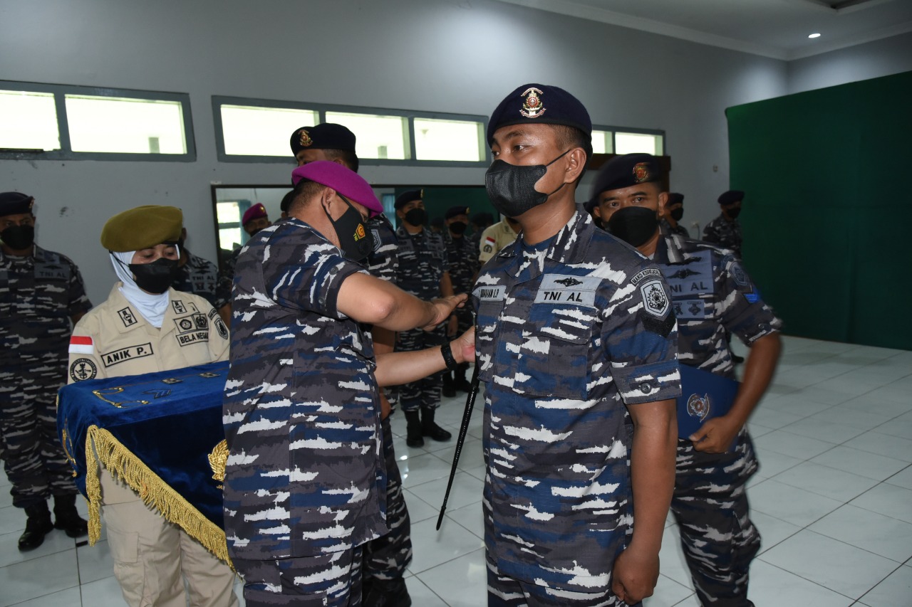 Surabaya, 02 April 2022,– Sebanyak 65 Prajurit strata Bintara, Tamtama dan Pegawai Negeri Sipil (PNS) yang berdinas di Markas Komando (Mako) dan Detasemen Markas (Denma) Komando Pembinaan Doktrin Pendidikan dan Latihan Angkatan laut (Kodiklatal) naik pangkat satu tingkat lebih tinggi dari pangkat sebelumnya. Adapun laporan kenaikan pangkat kala waktu bulan April 2022 tersebut dipimpin langsung Komandan Denma Kodiklatal Kolonel Marinir Pujiono di Aula Gedung Sindoro Kodiklatal Bumimoro Surabaya, (01/04).