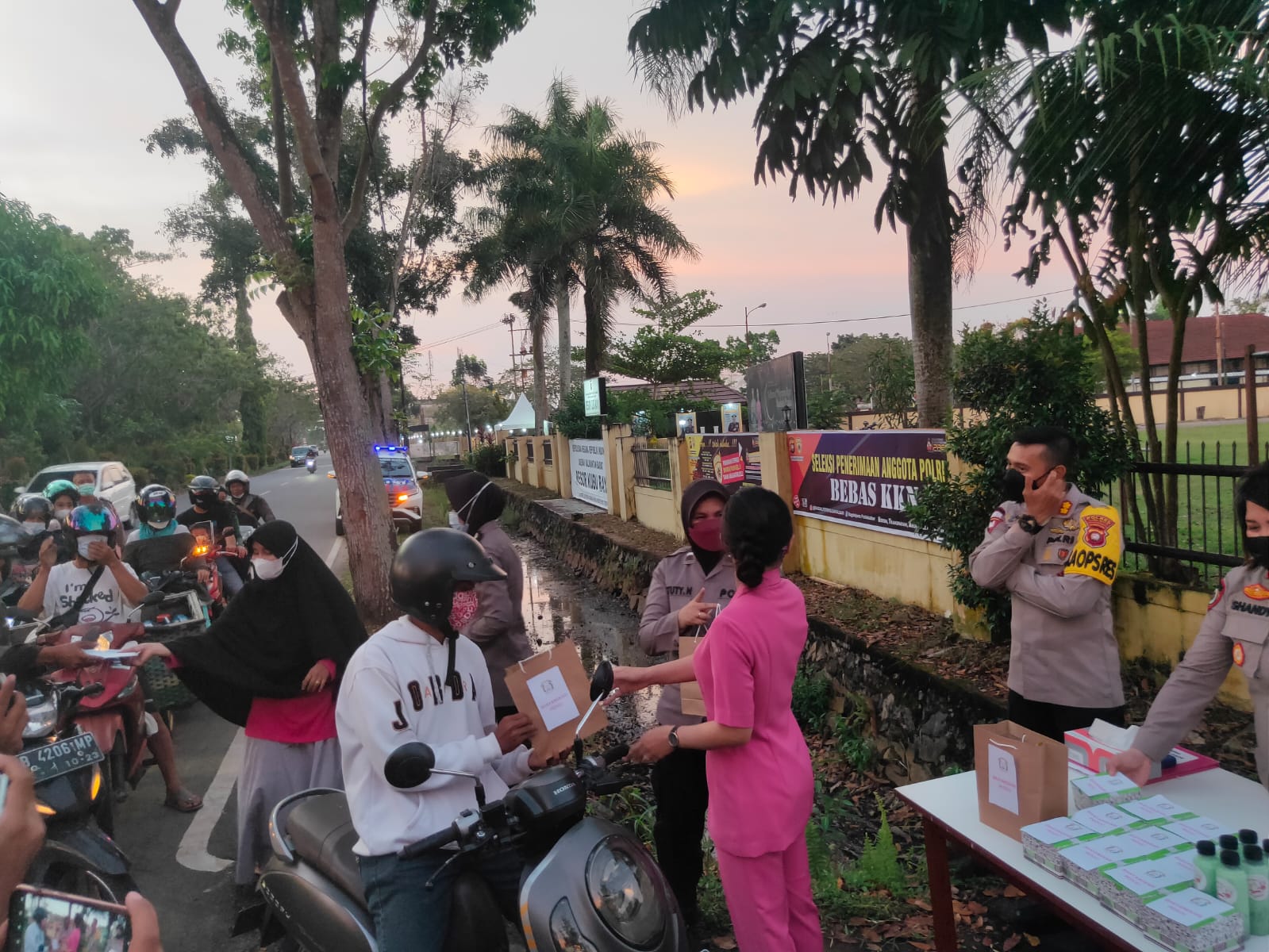 “selain membagikan takjil bapak kapolres serta bhayangkari juga membagikan masker kepada pengendara yang melintas, sekaligus menghimbau masyarakat tetap mematuhi protokol kesehatan covid – 19 dalam melakukan aktifitas diluar rumah”tutupnya