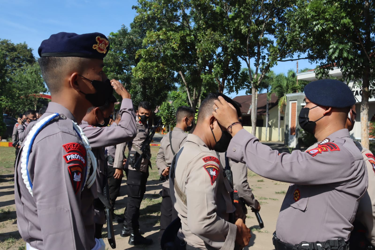 Serang – Batalyon C Pelopor Satuan Brimob Polda Banten melaksanakan pemeriksaan sikap tampang dan persenjataan personel usai melaksanakan apel pagi bertempat di Lapangan Hijau Satbrimob Polda Banten pada Rabu (06/04).