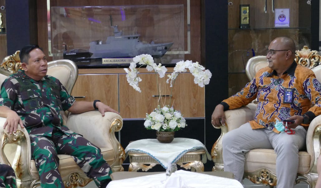TNI AL/ Koarmada III. Panglima Komando Armada (Pangkoarmada) III, Laksamana Muda TNI Irvansyah, S.H., CHRMP., M.Tr. Opsla., menerima Kunjungan Pimpinan Cabang BNI Sorong, Roby Hans Yawan SE, MH dan staff di Ruang Kerja Pangkoarmada III Mako Koarmada III, Katapop Kabupatern Sorong Papua Barat, Selasa (12/04/2022).