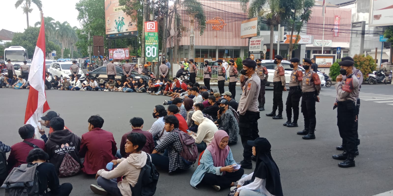 Kota Serang – Polda Banten melakukan pengamanan unjuk rasa (Unras) mahasiswa yang melakukan aksi long march pada Rabu (13/04).