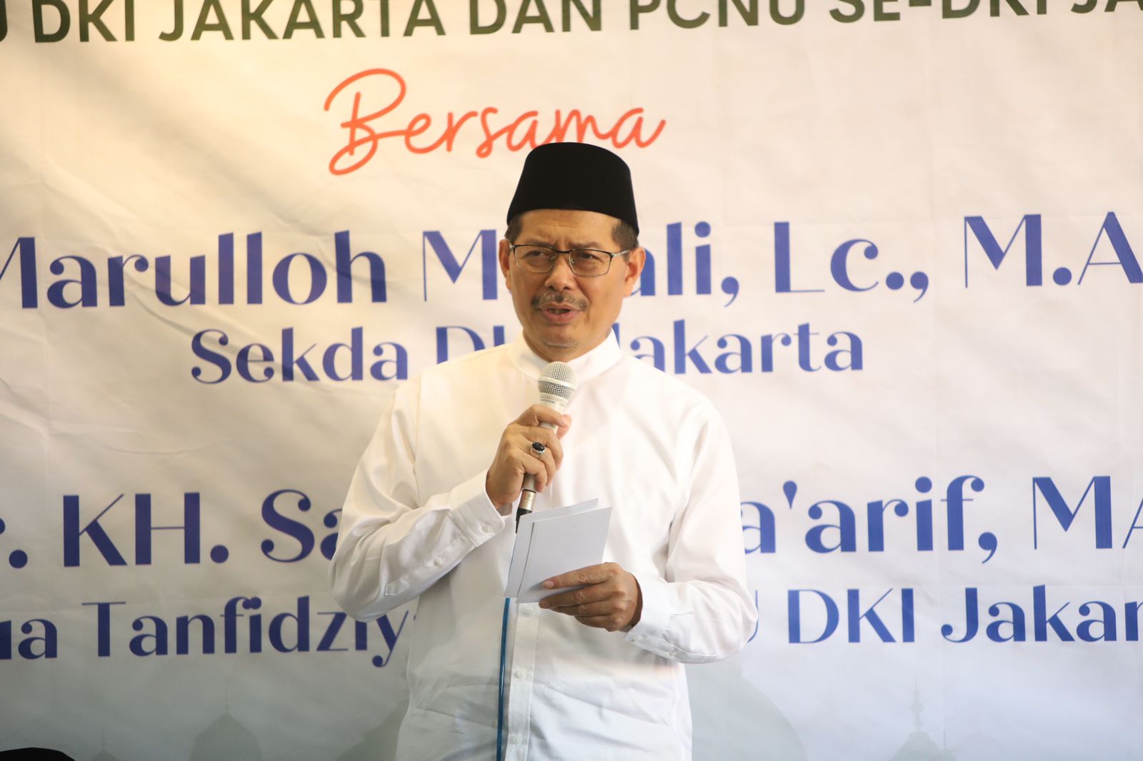 Sekretaris Daerah Provinsi DKI Jakarta, Marulloh Matali didampingi Walikota Kota Administrasi Jakarta Utara, Ali Maulana Hakim menghadiri silaturahmi Keluarga Besar Nahdatul Ulama Jakarta Utara di Kantor Sekretariat PCNU, Jalan Kramat Raya, Kelurahan Tugu Utara, Kecamatan Koja, Sabtu (23/4).