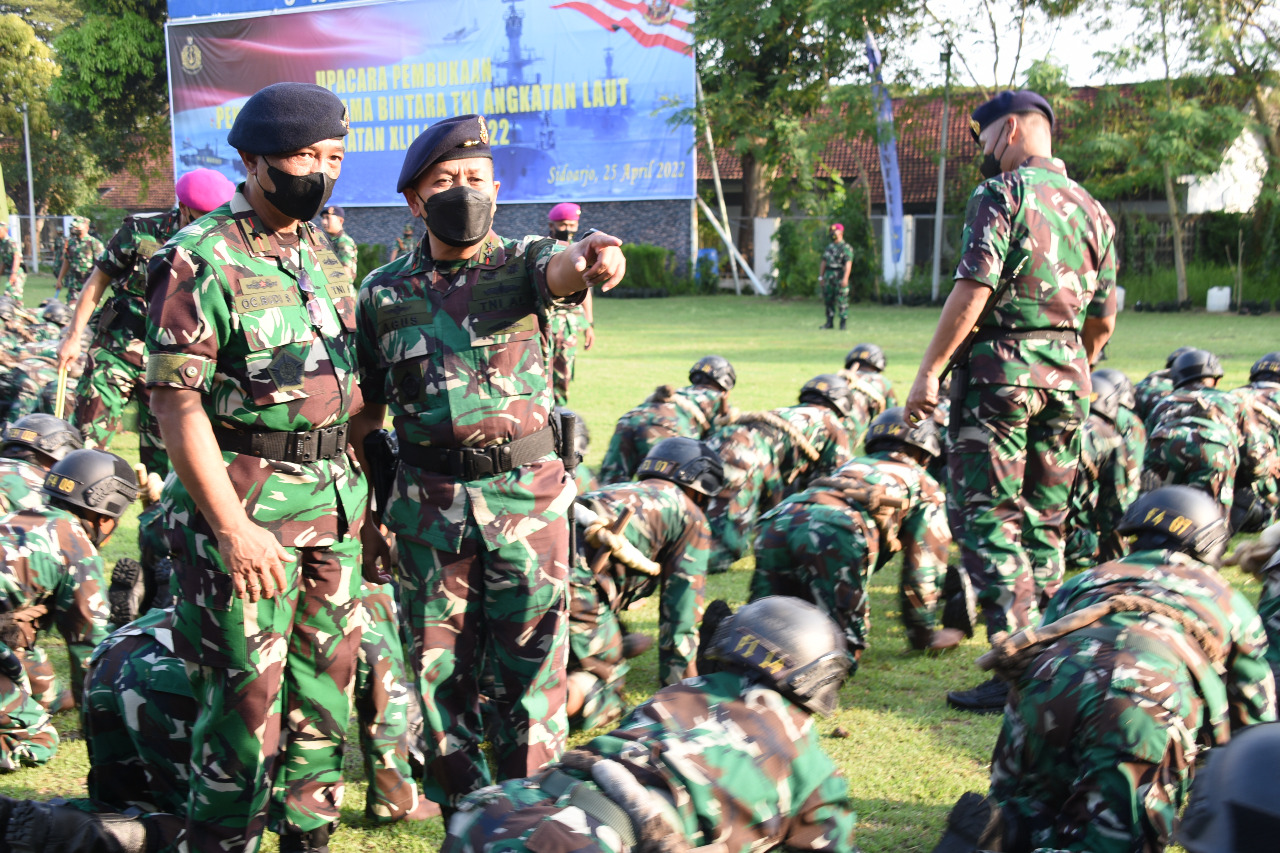 Sidoarjo, 25 April 2022,- 815 Pemuda pemudi yang telah lolos seleksi penerimaan prajurit TNI Angkatan Laut (TNI AL), hari ini secara resmi mengikuti Pendidikan Pertama Bintara (Dikmaba) TNI AL Angkatan XLII gelombang 1 T.A. 2022 yang dibuka oleh Wakil Komandan Komando Pembinaan Doktrin Pendidikan dan Latihan TNI AL (Wadan Kodiklatal) Laksamana Muda TNI Agus Hariadi mewakili Dankodiklatal Letnan Jenderal TNI Marinir Suhartono bertempat di Lapangan Samudra Puslatdiksarmil, Sidoarjo, Senin (25/4)