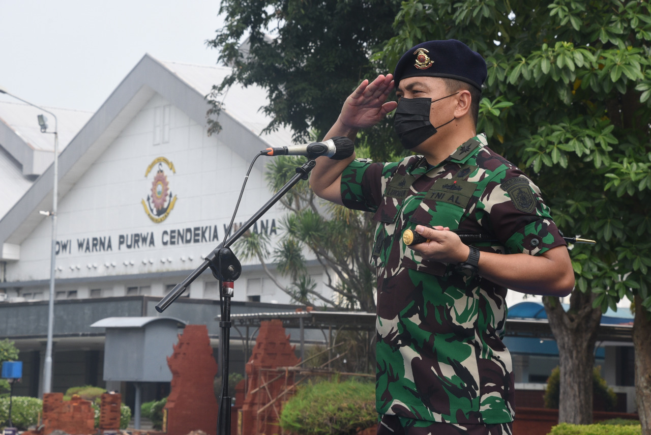 Surabaya, 25 April 2022,Jelang pelaksanaan cuti bersama Lebaran atau Idul Fitri 1443 Hijriah/Tahun 2022, Pgs. Komandan Puslatopsla Kolonel Laut (P) Lukman Kharish mengimbau kepada seluruh Prajurit dan PNS Komando Pembinaan Doktrin, Pendidikan dan Latihan TNI AL (Kodiklatal) untuk tetap menjaga protokol kesehatan Covid-19 dan aturan administrasi lainnya saat berlebaran di kampung halaman.