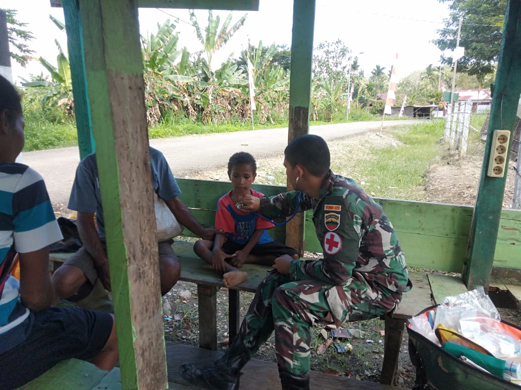 (Keerom). Dalam penanganan kesehatan di wilayah perbatasan, Satgas Yonif 126/KC memberikan pelayanan kesehatan secara gratis bagi masyarakat di setiap datang ke Pos-Pos salah satunya yang dilakukan Pos Waris di Kampung Banda, Distrik Waris, Kabupaten Keerom.