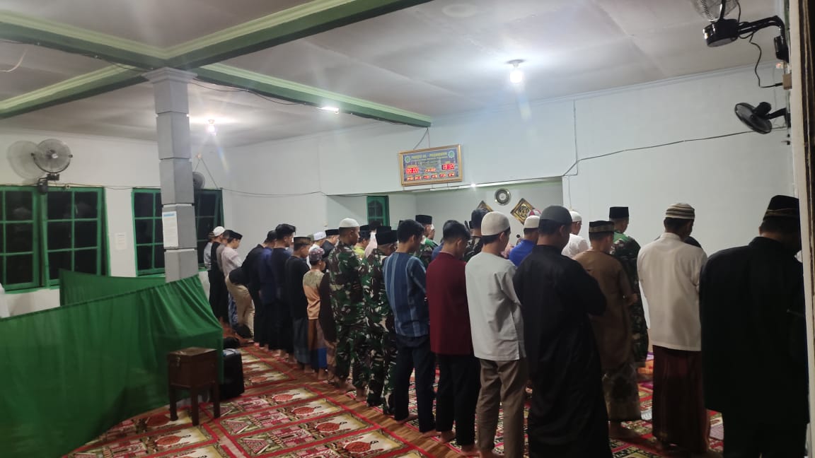 Sinergitas Anggota Satgas Yonif 144/JY Bersama Polri dan Wabup Bukber dan Sholat Tarawih Berjamaah di Masjid Perbatasan