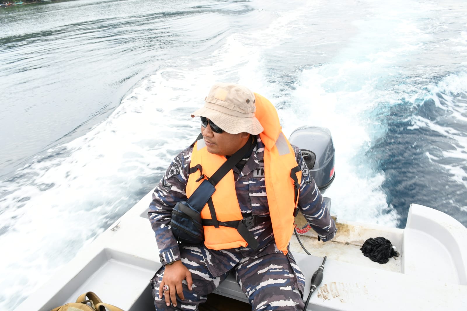 Menjelang Hari Raya Idul Fitri 1443 H / 2022 M, Pangkalan TNI AL (Lanal) Banyuwangi melalui Tim Second Fleet Quick Response (SFQR) Lanal Banyuwangi yang dipimpin Letda Laut (T) Achmad Andri (Dansub Unit Intel Lanal Banyuwangi) melaksanakan patroli keamanan laut disekitar Perairan Selat Bali dalam rangka pengamanan arus mudik lebaran, Sabtu (30/04/2022).