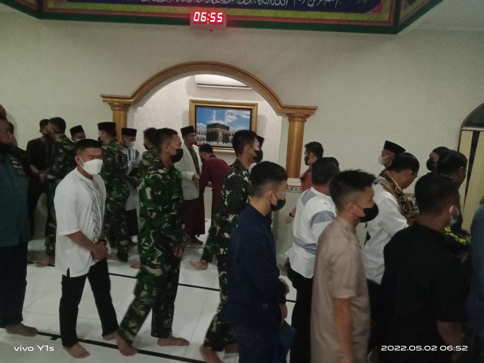 Jakarta, 2 Mei 2022 ——- Pagi ini, ratusan prajurit Kolinlamil berbondong-bondong menuju Masjid At-Tauhid, Mako Kolinlamil, Tanjung Priok, Jakarta Utara untuk melaksanakan sholat Idul Fitri, Senin (2/5). Mereka adalah prajurit yang pada hari ini masuk dalam divisi jaga dan sedang tidak aktif jaga serta prajurit tidur dalam KRI yang pada cuti bersama tahun ini belum mendapatkan kesempatan untuk mudik lebaran karena harus menjaga dan mengamankan alutsista TNI AL.