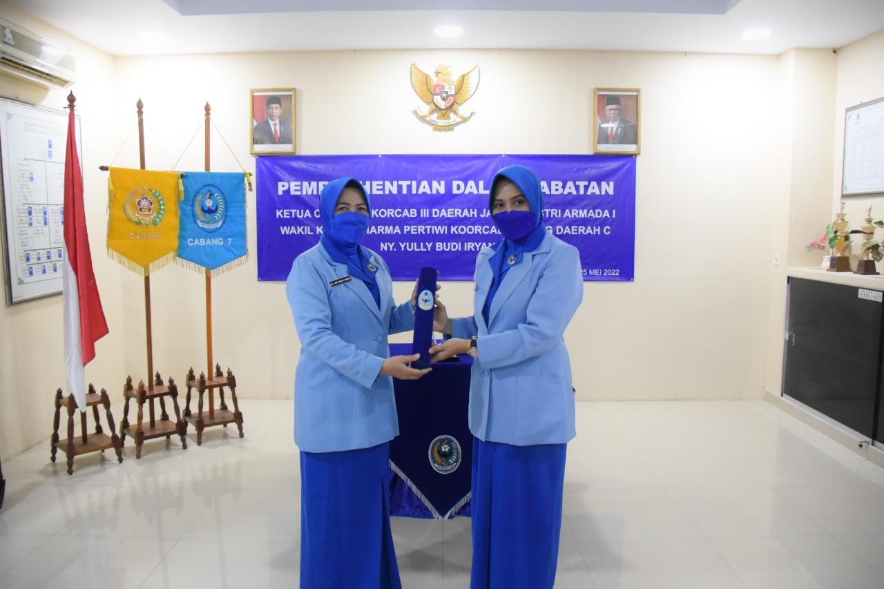 Ketua Korcab III Daerah Jalasenastri Armada I Ny. Atik Umar Farouq memimpin acara Pemberhentian Dalam Jabatan Ketua Cabang 7 Korcab III Daerah Jalasenastri Armada I Ny.Yully Budi Iryanto, bertempat di Kantor Jalasenastri Korcab III DJA I Mako Lantamal III Jakarta, Rabu (25/05/2022).