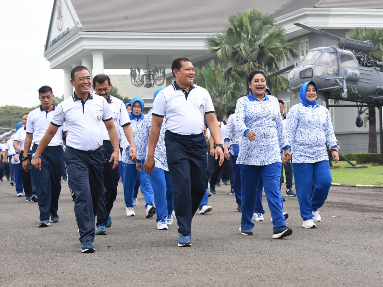 AAL, Surabaya (27/5).Kepala Staf Angkatan Laut (Kasal) Laksamana TNI Yudho Margono beserta Ibu Taruna AAL Ny. Vero Yudo Margono melaksanakan olahraga bersama seluruh Anggota Tetap (Antap) Akademi Angkatan Laut (AAL) dan Taruna AAL Tingkat I, II dan III di Ksatrian AAL, Bumimoro, Surabaya, Jum’at (27/5).