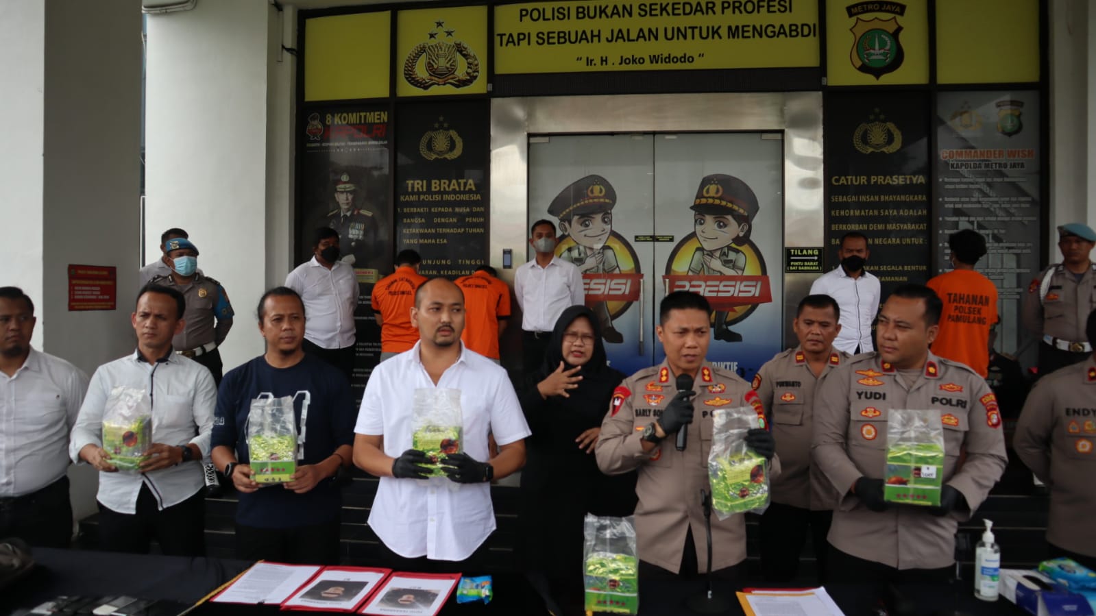 Barang bukti sebanyak 6.330.49 (enam ribu tiga ratus tiga puluh koma empat puluh sembilan) Gram berhasil diamankan dari para tersangka, hal tersebut diungkap Kapolres Tangsel AKBP Sarly Sollu, SIK.,MH saat press realise di mapolres tangsel, senin (30/5/22).
