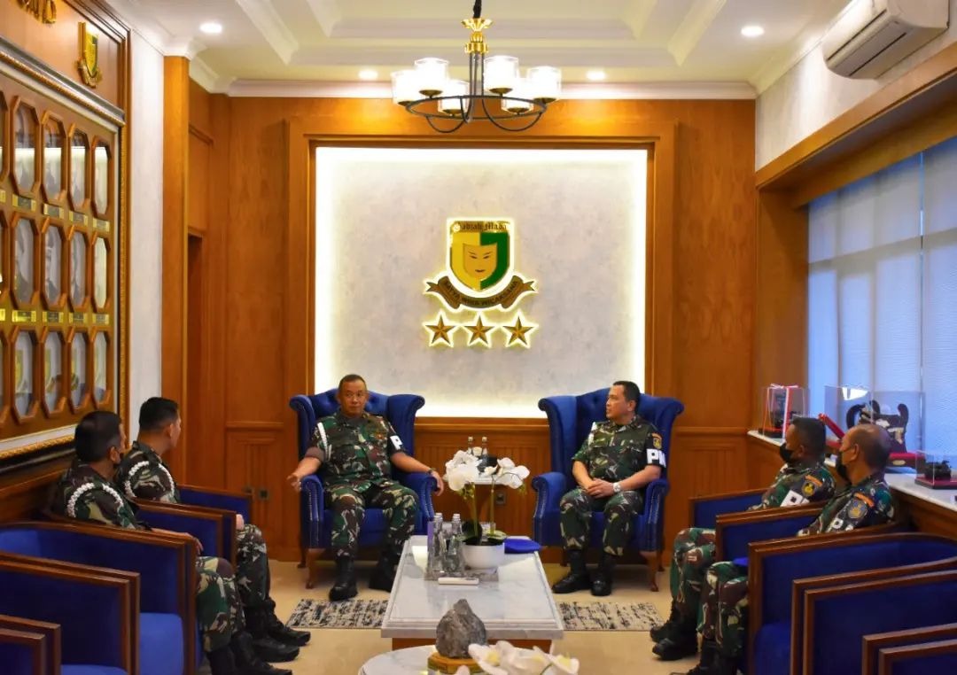 Dalam rangka memperkuat tali silahturahmi dan sinergi antar Korps Polisi Militer, Komandan Pusat Polisi Militer Angkatan Laut (Danpuspomal) Laksamana Muda TNI Edwin, S.H., M.Han., M.H didampingi oleh Kepala Satuan Penyidikan (Kasatidik) Puspomal Kolonel Laut (PM) Muriantoni dan Kepala Satuan Penegakan Ketertiban (Kasatgaktib) Puspomal Kolonel Laut (PM) Hendri Adi Sinaga, S.H., M.H berkunjung ke Mako Puspomad yang disambut langsung oleh Komandan Pusat Polisi Militer Angkatan Darat (Danpuspomad) Letnan Jenderal TNI Chandra W. Sukotjo, M.Sc. didampingi oleh Dirbingakkum Puspomad Kolonel Cpm Safrin Rachman, S.H., M.M dan Dirbinlinpam Kolonel Cpm Siagian Donald Meyer Baringin, S.I.P di Ruang Wicaksana Mako Puspomad, Jakarta Pusat, Senin (31/5/2022).