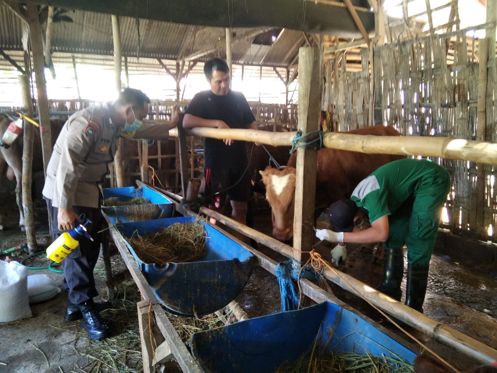 Cegah Penyebaran Virus PMK, Bhabinkamtmas Desa Karangdinoyo Lakukan Pengecekan Hewan Ternak