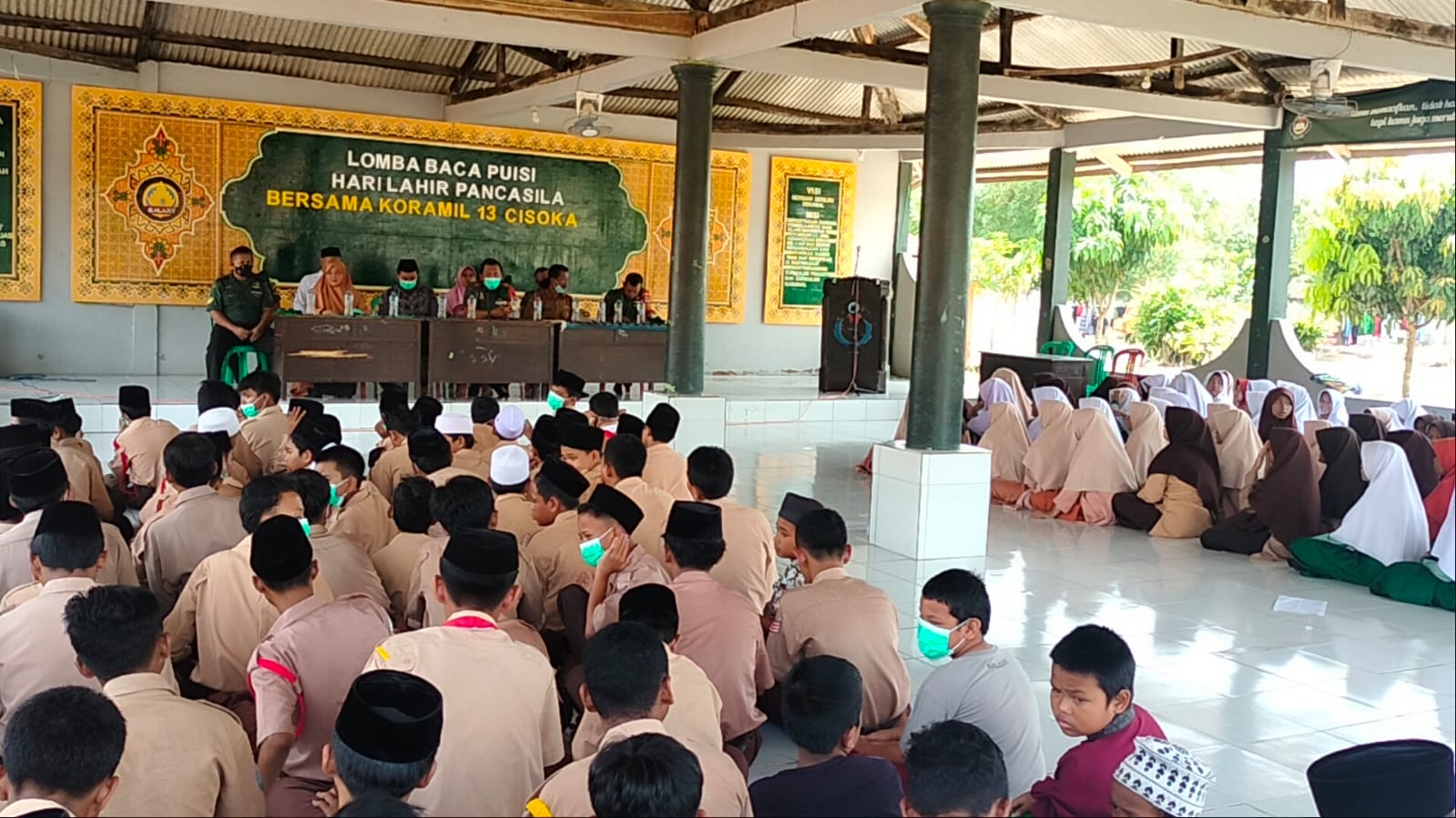 Tangerang,Koramil 13 Cisoka Kodim 0510/ Trs, mengelar Lomba Puisi dalam rangka untuk memperingati lahir nya hari Pancasila di Ponpes Al Makmur Kampung Pancasila RT 005 RW 002 Desa Munjul Kecamatan Solear Kabupaten Tangerang Banten, Rabu 1 Juni 2022.