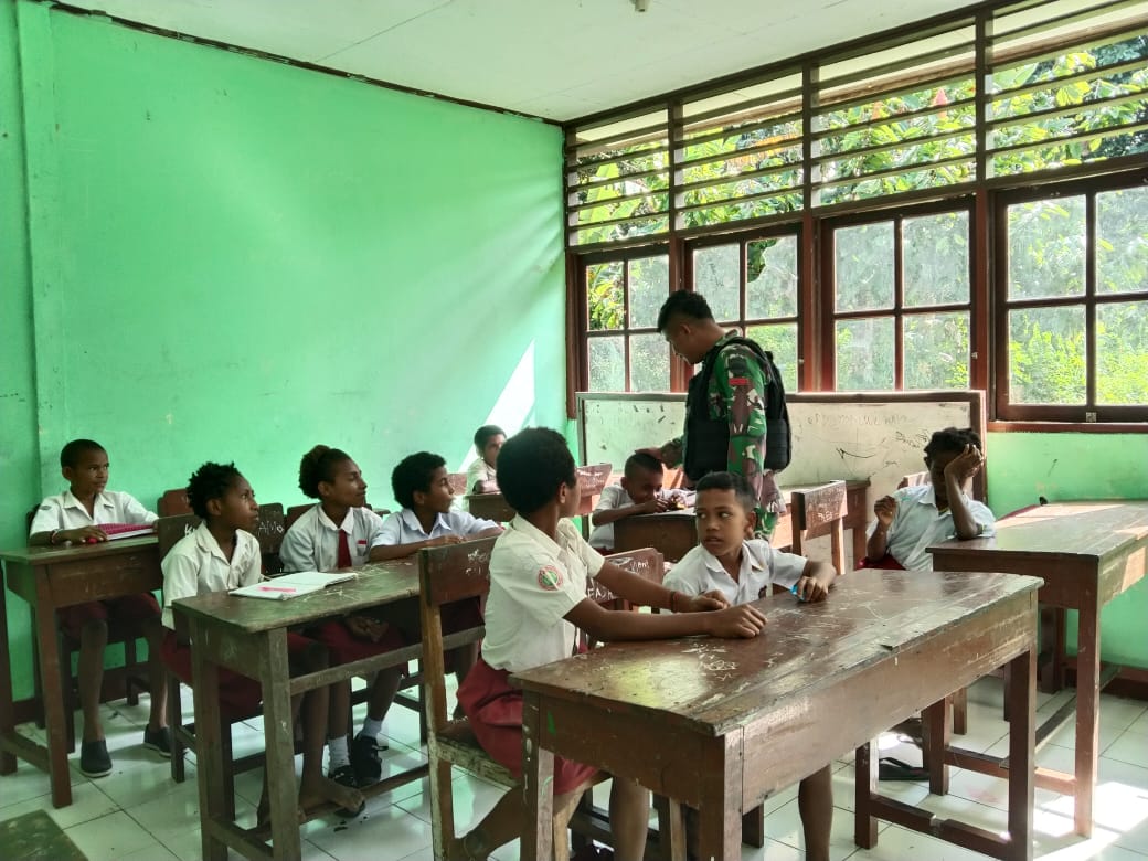 Keceriaan Dalam Cerdaskan Anak Bangsa, Anggota Satgas Yonif 126/KC Menjadi Gadik di Perbatasan Papua