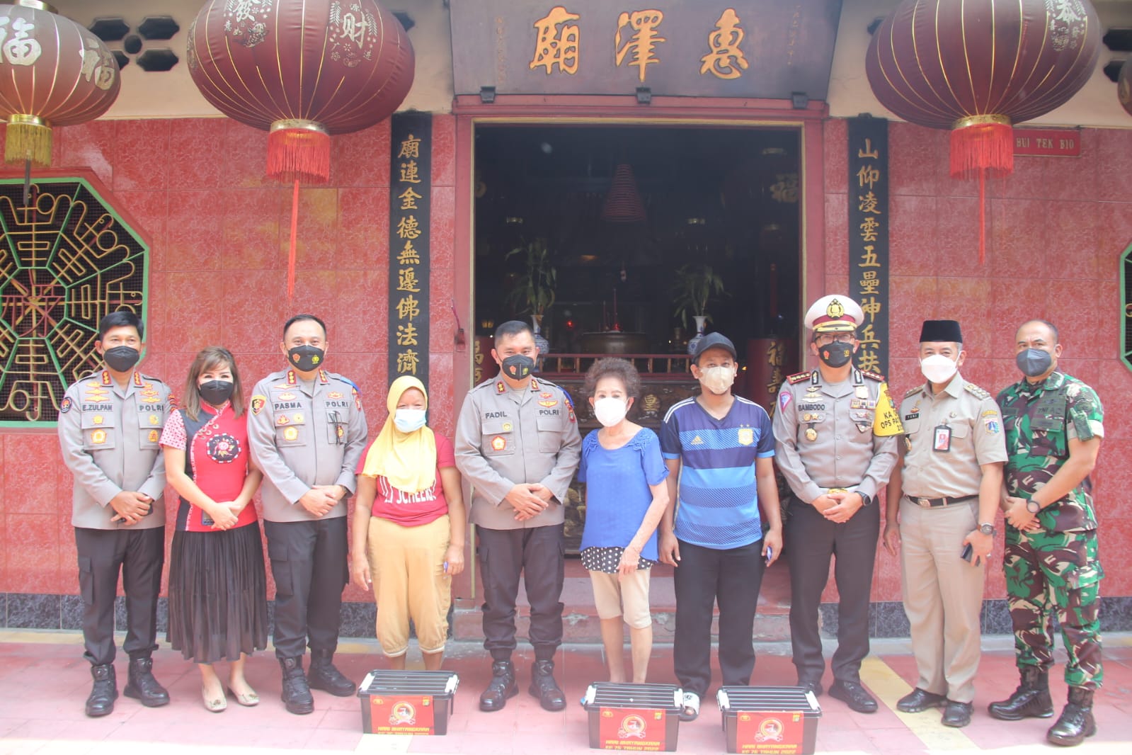 Usai melakukan zoom meeting, Kapolda Metro Jaya Irjen Pol. Dr. Mohammad Fadil Imran memberikan secara simbolis berupa beras 5 kg, sejumlah 100 paket sembako kepada perwakilan warga Wihara Dharma Bakti. (Tk)
