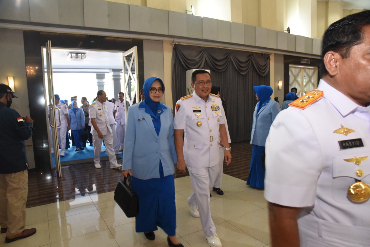 Komandan Pusat Polisi Militer Angkatan Laut (Danpuspomal) Laksamana Muda TNI Edwin, S.H., M.Han., M.H., didamping ketua Cabang BS Jalasenastri Puspomal Ny. Wenny Edwin menghadiri Upacara Penutupan Pendidikan dan Wisuda Sarjana Taruna dan Taruni Akademi Angkatan Laut (AAL) Angkatan Ke-67 tahun 2022, di Gedung Maspardi AAL, Bumimoro, Surabaya. Jumat (24/06/2022).