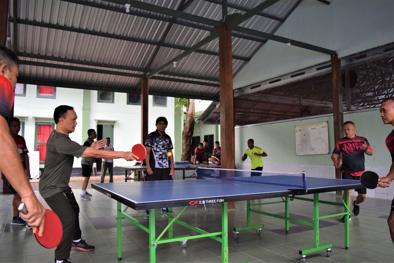 Guna Jaga Kebugaran Tubuh, Danrem 151/Binaiya Laksanakan Olahraga Tenis Meja.