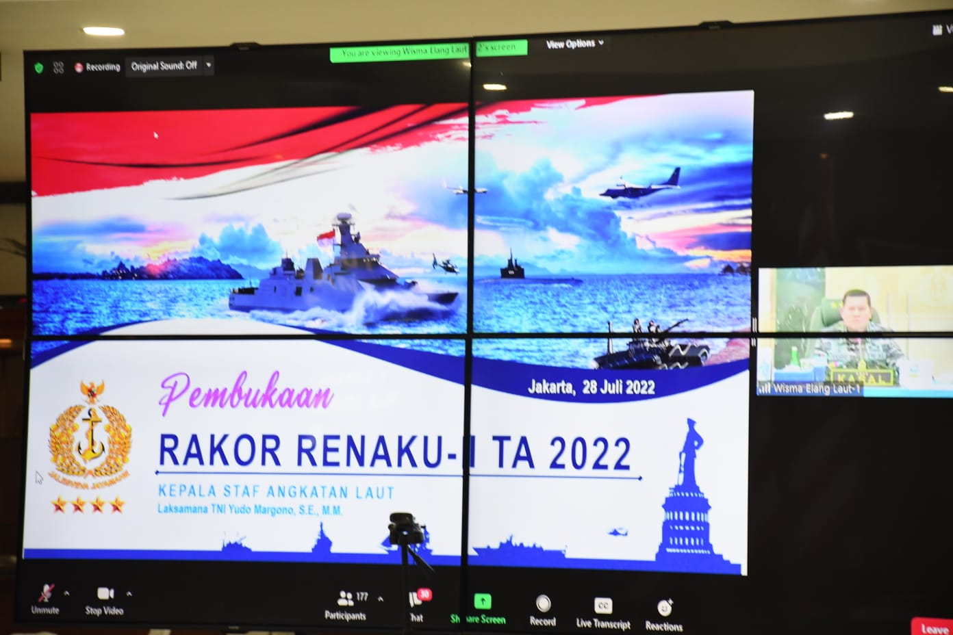 Dispen Lantamal3,- Komandan Lantamal III Jakarta Brigjen TNI (Mar) Umar Farouq, S.A.P., CHRMP., M.Tr.Opsla., M.Han. ikut serta dalam Rapat Koordinasi Perencanaan dan Keuangan (Rakor Renaku) I TNI AL Tahun 2022 secara virtual didampingi Wadan Lantamal III, Asrena, aslog Danlantamal III dan Kafasharkan Lantamal III di gedung serbaguna, Markas Komando Lantamal III, Jalan gunung Sahari No.2 Ancol Jakarta Utara. Kamis (28/07/2022).
