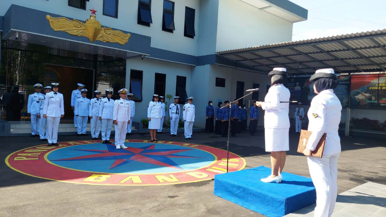 Bandung,- Komandan Pangkalan TNI Angkatan Laut (Danlanal) Bandung Kolonel Laut (KH/W) Dr. Renny Setiowati, S.T., M.Sc., M.Tr.Hanla., selaku Inspektur Upacara pada Peringatan Hari Kesaktian Pancasila Tahun 2022 yang diikuti oleh para Perwira Staf, Bintara, Tamtama dan Segenap Pegawai Negeri Sipil (PNS) Lanal Bandung, bertempat di Lapangan Apel Markas Komando (Mako) Lanal Bandung, Jalan Aria Jipang No. 8 Kota Bandung, Sabtu (01/10/2022).
