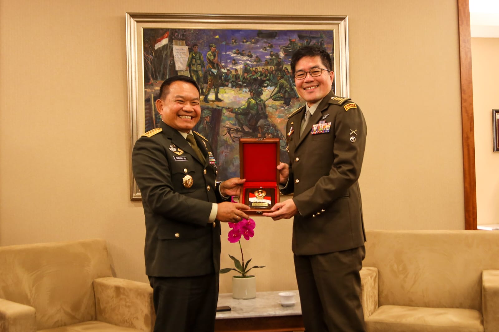 JAKARTA, tniad.mil.id- Dalam rangkaian kunjungan kerjanya ke Singapura, Kepala Staf Angkatan Darat (Kasad) Jenderal TNI Dr. Dudung Abdurachman melakukan kunjungan kehormatan (Courtesy call) kepada Pejabat Pertahanan, Angkatan Bersenjata dan Angkatan Darat Singapura. Jumat, (18/11/2022).