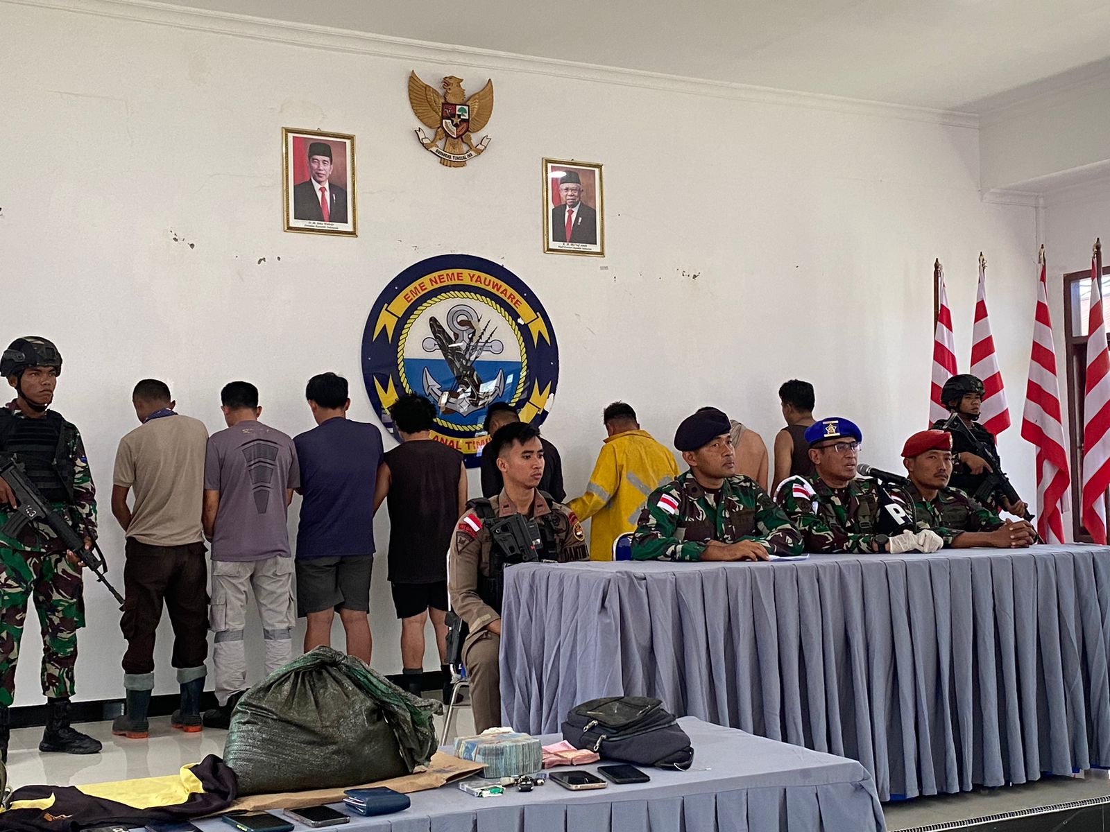 Komandan Lanal Timika Letkol Laut (P) Apriles Lusien S., M.Han., M.Tr.Opsla diwakili Palaksa Lanal Timika Mayor Laut (P) Avissema Herlambang, Dandenpom Lanal Timika Kapten Laut (PM) Rony Elianor Judistira melaksanakan pressrilis penangkapan ini, didampingi Danton Satgas Amole Lanal Timika Letda Laut (P) Supratman dan Danpos Brimob Porsite Ipda Ilham Anggara, Senin siang di Aula Kantor Perwakilan Lanal Timika.