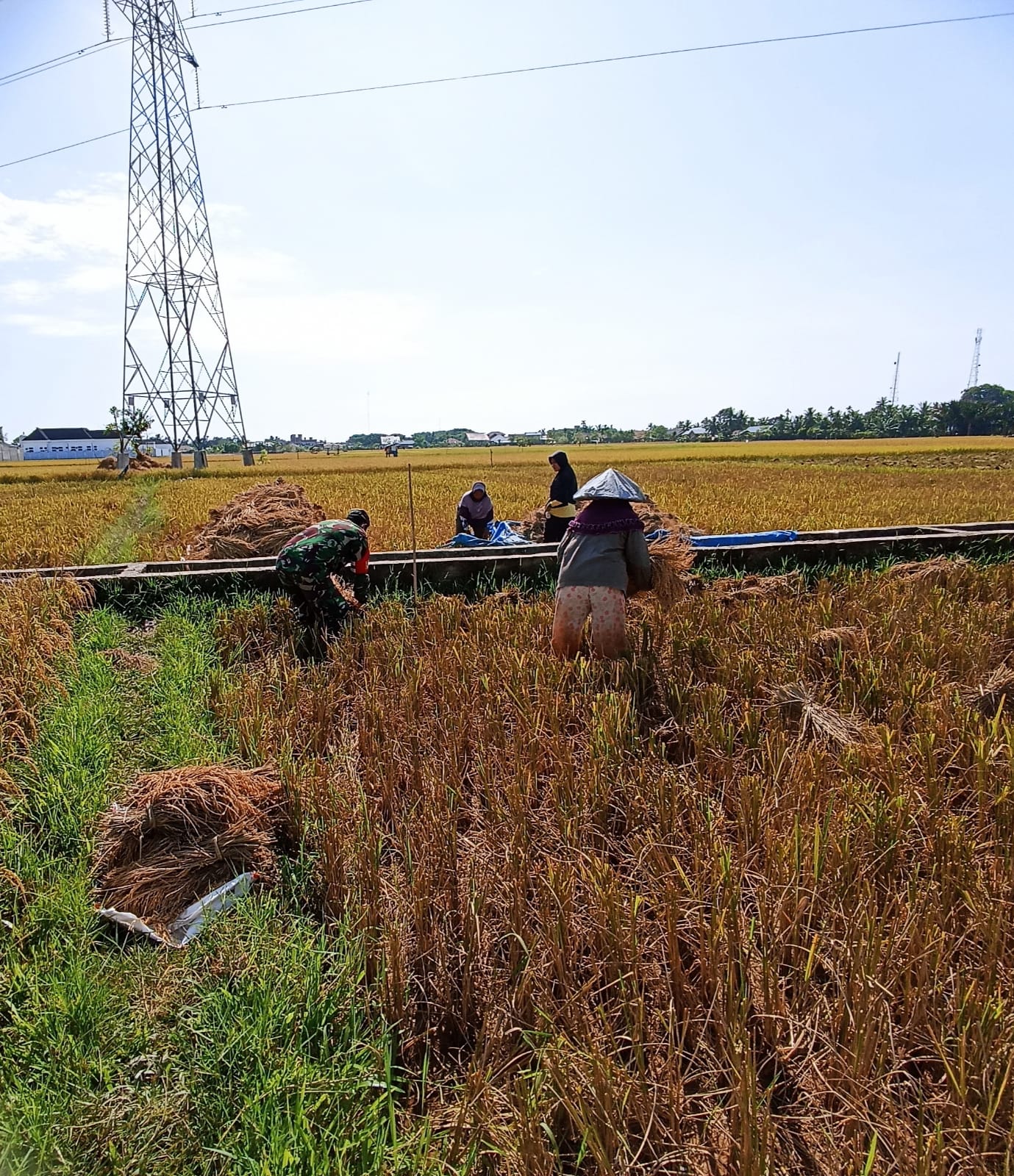 Babinsa Peureulak Bantu Petani Panen Padi