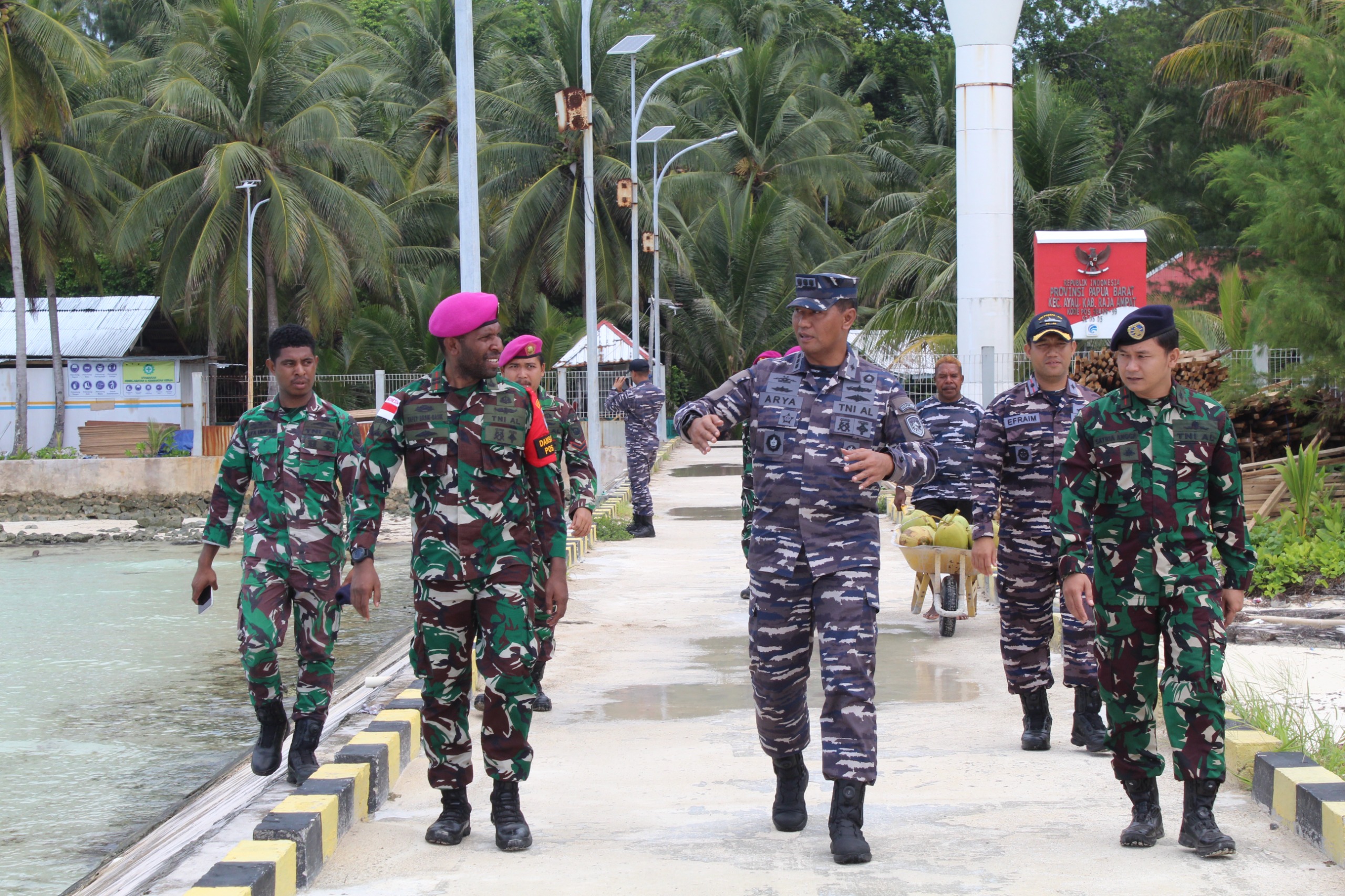 Setiba di Pulau Fani dengan menggunakan Rigid Hull Inflatable Boat (RHIB) dari Kapal Markas Guspurla Koarmada III yaitu KRI Posepa-870, Kepala Staf Guspurla Koarmada III Kolonel Laut (P) Arya Delano dan Komandan KRI Posepa-870 Mayor Laut ( P) Efraim disambut dengan hangat oleh Komandan Satgas Marinir Pengamanan Pulau Terluar (Puter) yaitu Lettu Mar Yafet Basik dan Komandan Posal Pulau Fani Letda Laut (P) Satria Angga beserta prajuritnya.