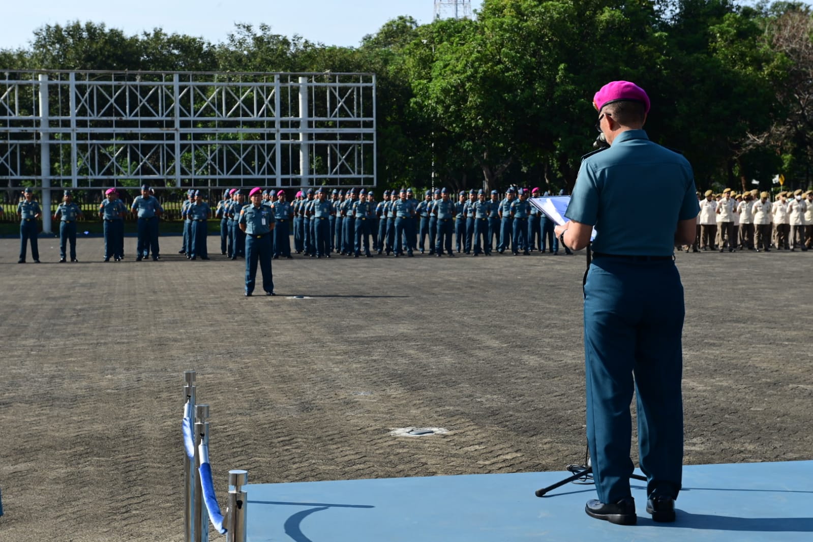 Jakarta, 19 Desember 2023,—- Dalam rangka untuk mengobarkan semangat Bela Negara dan meningkatkan rasa cinta tanah air, tepat di tanggal 19 Desember 2023 TNI Angkatan Laut (TNI AL) menyelenggarakan upacara untuk memperingati Hari Bela Negara ke-75 tahun 2023 dengan dilaksanakan upacara militer yang dipimpin oleh Pati Sahli Kasal Bidang Wilnas Brigjen TNI (Mar) Mauradi di Lapangan Apel Denma Mabesal, Cilangkap, Jakarta Timur, Selasa (19/12).